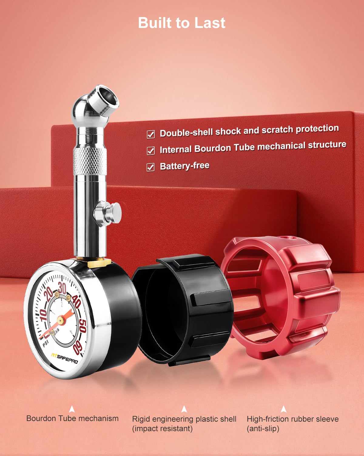 First of all, it doesn't need batteries, so I can use it anytime, anywhere. The measurements are consistent and reliable. I compared it with my car’s air compressor gauge, and the readings were nearly identical.